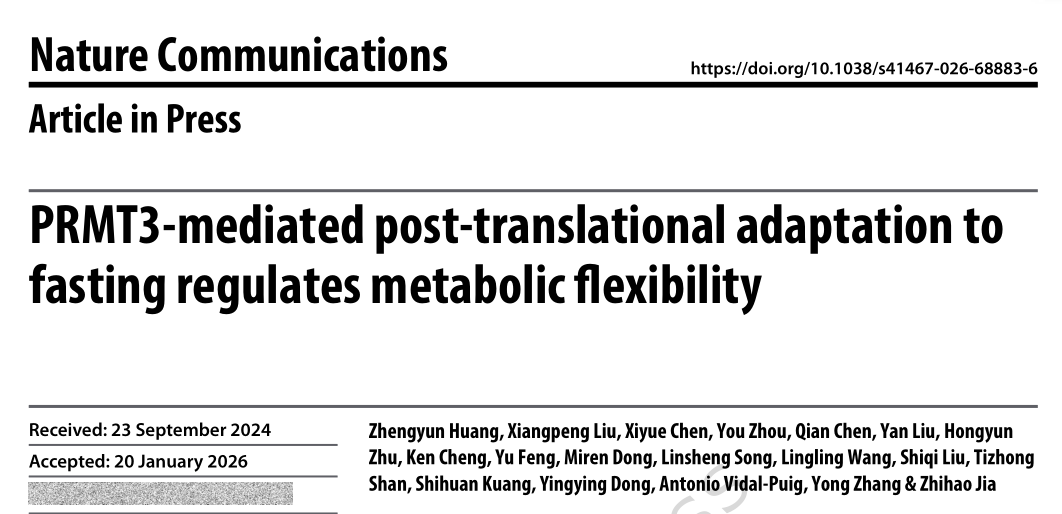 2026年2月2日,苏州大学剑桥-苏大基因组资源中心贾志浩、张勇及剑桥大学Antonio Vidal-Puig课题组联合在Nature Communications杂志在线发表了题为“PRMT3-mediated post-translational adaptation to fasting regulates metabolic flexibility”的工作。该研究揭示了内脏白色脂肪组织中PRMT3介导的精氨酸甲基化修饰作为一种营养响应性调节机制,通过甲基化线粒体柠檬酸转运蛋白SLC25A1调节葡萄糖代谢,抑制该机制会改善肥胖状态下的代谢灵活性损伤,因而可能成为潜在的治疗靶点。(麦特绘谱为本研究提供定制化糖酵解及TCA循环检测)