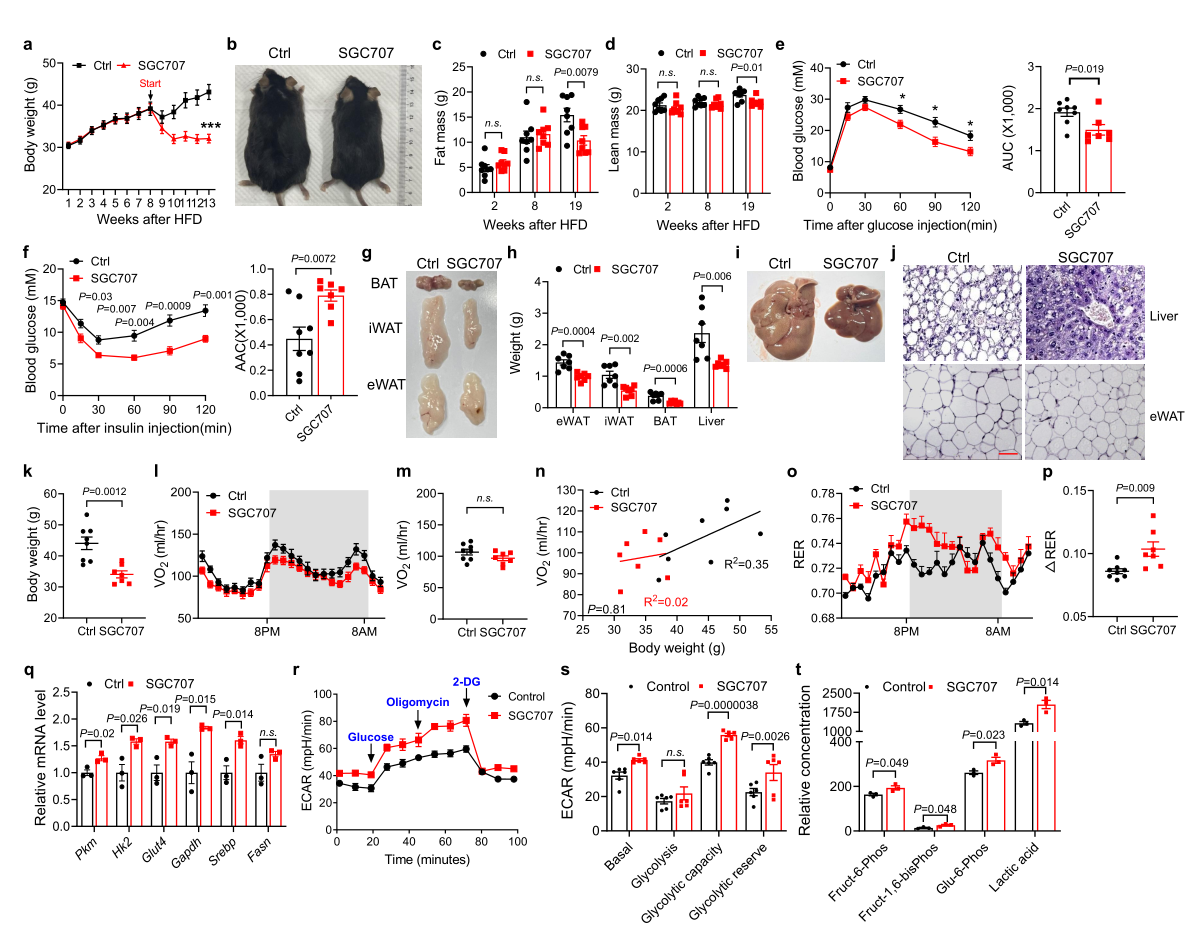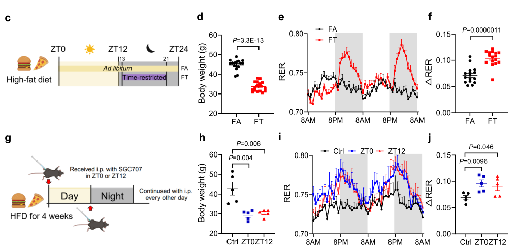图二. SGC707处理小鼠可以模拟16:8限制性饮食的代谢益处