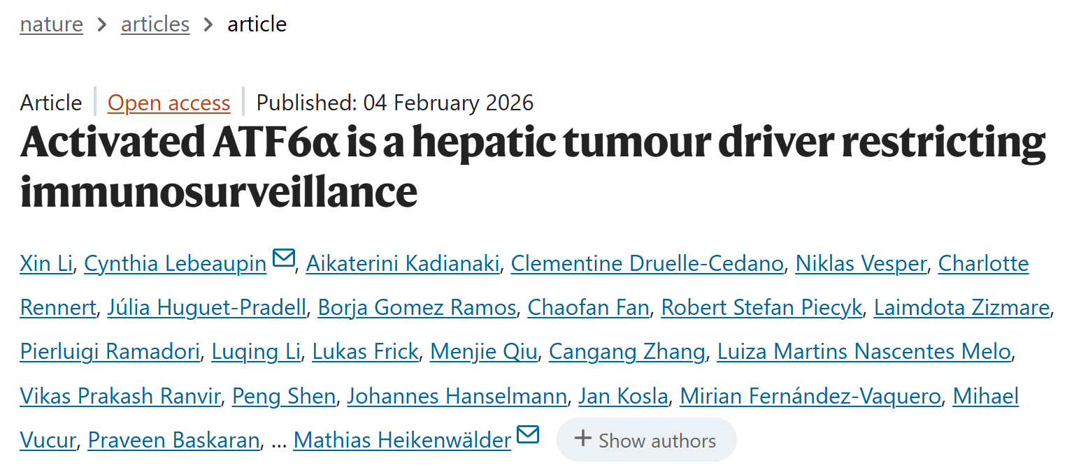 Li X, Lebeaupin C, Kadianaki A, et al. Activated ATF6α is a hepatic tumour driver restricting immunosurveillance. Nature. 2026.