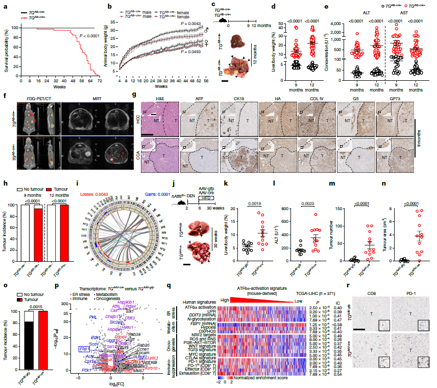 图3. 持续的ATF6α激活诱导小鼠原发性肝癌