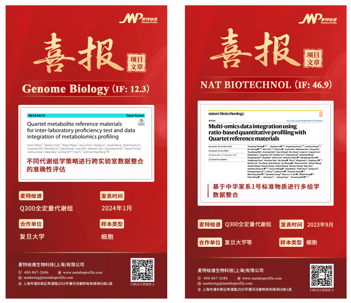 麦特绘谱已协助客户发表350余篇SCI文章,累计影响因子4000+,其中IF>10的有80余篇,包括Nature、Science、Nature Biotechnology、Cell Metabolism、Cell Host & Microbe等国际顶刊。其中Q300是多组学联合发表文章的利器,相关代表性案例: