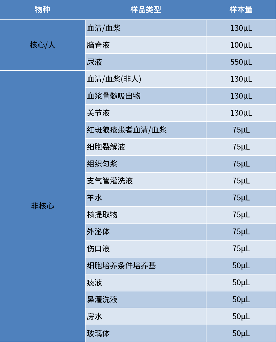 SomaScan平台可应用于多个物种(人、小鼠、大鼠、非人灵长类、猫、狗、猪等)和各种样品类型(血清、血浆、尿液、脑脊液、细胞和细胞培养上清、外泌体、唾液、房水、皮肤、粪便、玻璃体等),无缝衔接动物模型和临床研究,以满足超大队列、临检、药检、科研等需求。